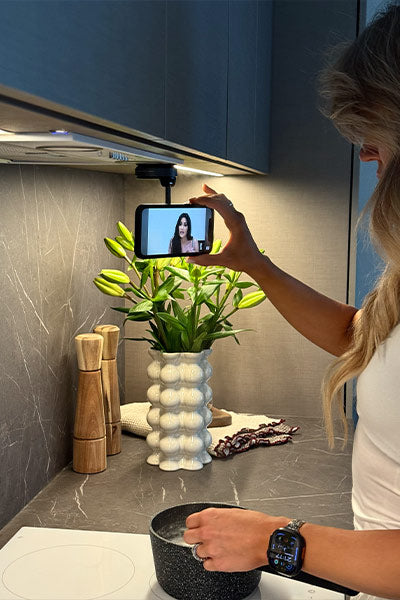 Snap your iPhone directly onto the MagSafe head. Don’t have MagSafe? Use the included metal ring for secure attachment.