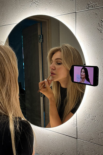 Stick the suction base to any smooth surface—like your windshield, mirror, tile, or desk. Twist the bottom ring to lock it in place.